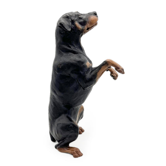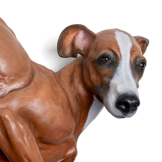 Beth Thompson studied ceramic sculpture at Northern Clay Center (Minneapolis, MN) where she began to sculpt realistic, life-sized dogs out of clay. Animals are her visual medium, and through capturing them in moments of expression and connection she explores human emotions, intimacy and inner dialogues without the barriers of discourse surrounding human figurative work. Thompson emphasizes the power of tapping into vulnerability and quiet states of feeling through the interactions between figures in her work. Her sculpting process includes sketching from life, photo collection, and studying video to learn about the anatomy, musculature, kinesiology and gesture of her subjects. She then makes small scale models to find poses and form before moving on to sculpting the final work from a solid piece of clay on armatures. After sculpting, Thompson lets the clay begin hardening before cutting it into sections, hollowing it out, and reassembling.