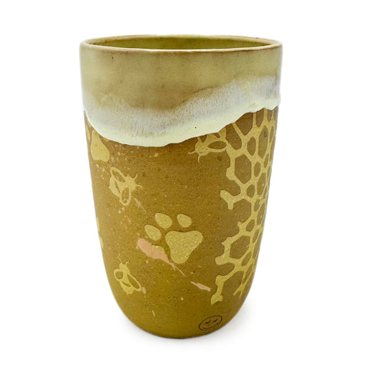 Delvin M. Goode was raised throughout California, Georgia, Germany, and Florida, as his father was in the United States Air Force. Growing up, his creativity was nurtured by family drawing competitions and art classes. He did not discover pottery until his junior year in college. Pursuing a degree in graphic design, Goode took an elective ceramics class, and was teaching wheel throwing by the end of the semester. Goode joined the United States Army in 2002. He continued practicing graphic design and painting, but notably not ceramics. In 2021 he received his MFA in ceramics from Fort Hays State University (Hays, Kansas). Now, Goode combines his 20 years of mixed media experience with functional pottery to create whimsical, funny, and unique works of art. Goode currently serves in the military while simultaneously expanding his presence in the art world. When one purchases a piece of his art, receiving, unpackaging, and utilizing the piece are all integral aspects of Goode’s artistic puzzles. He hopes his work will make people feel like they’ve won a prize and bring a smile to their face. Goode prefers his work to be used. The stains, scratches, and dents that come from use contribute to the art, and in his mind, is the coolest form of collaboration.