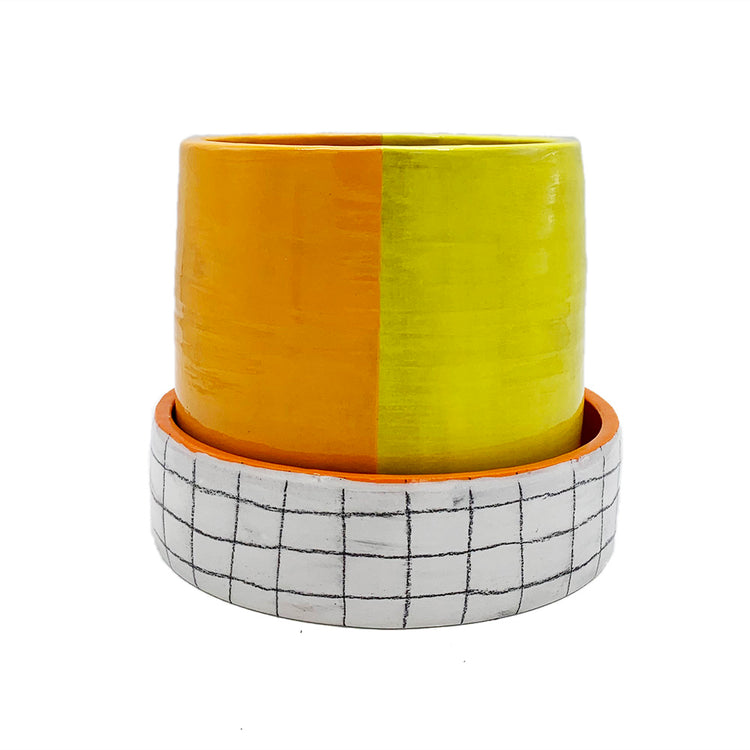Katie Cameron grew up in Burlington, Vermont, underglazing bisqueware in her dad’s office while he worked (the office was above a paint-your-own pottery studio). While receiving her degree at Augsburg College in Minneapolis, Minnesota, Cameron was a studio assistant for the ceramics department, and after graduating, she began her own independent studio practice as cry baby clay (www.crybabyclay.com). Through her platform, Cameron sells clay kits, handmade jewelry, sculptures, and pots as well as facilitates community workshops and studio space rentals. Her work is inspired by her many feelings, love of play, everyday objects, and authenticity. Cameron keeps a photo album from a trip she took to Oaxaca, Mexico called "walls that make me feel something.” The surfaces of her work lately have been informed by these color memories and patterns that left a lingering impression on her emotionally and aesthetically.