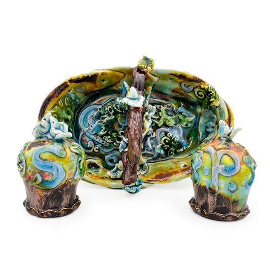 Lisa Orr completed an MFA at The New York State College of Ceramics at Alfred University in 1992. She has been awarded a Fulbright and National Endowment for the Arts fellowship through Mid-America Arts Alliance. Orr taught high school ceramics in Austin, Texas, and travels extensively for lectures and workshops. She creates low-fire pottery intended for use in everyday life. Though rooted in the deep history of ceramics, her forms are fluid and often gently asymmetrical—a combination of the clay’s natural expression and her own inspiration in the moment. Her slip work and relief decorations along with her rich colors suggest images of sky, coral reef, or flowers in bloom. The work is a riot of color, energy, memories, and emotion, all of which come together to create finished work that is cohesive and confident.