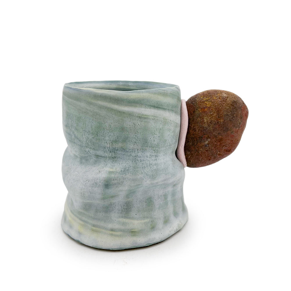 Handmade ceramic mug "POPJCT stoned" with found stone handle. 5" x 3.5" x 4"