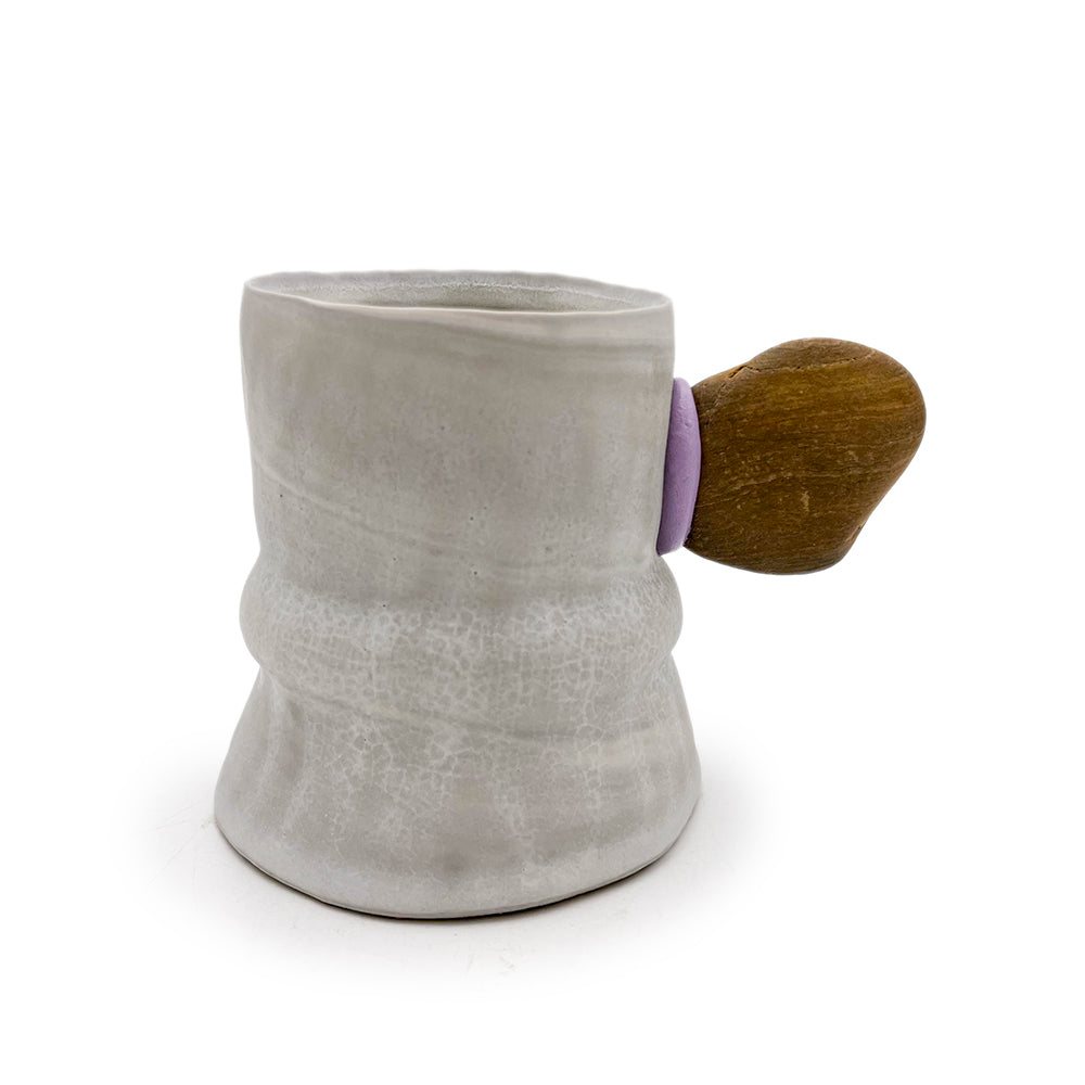 Handmade ceramic mug "POPJCT stoned" with found stone handle. 5.5" x 4" x 4"
