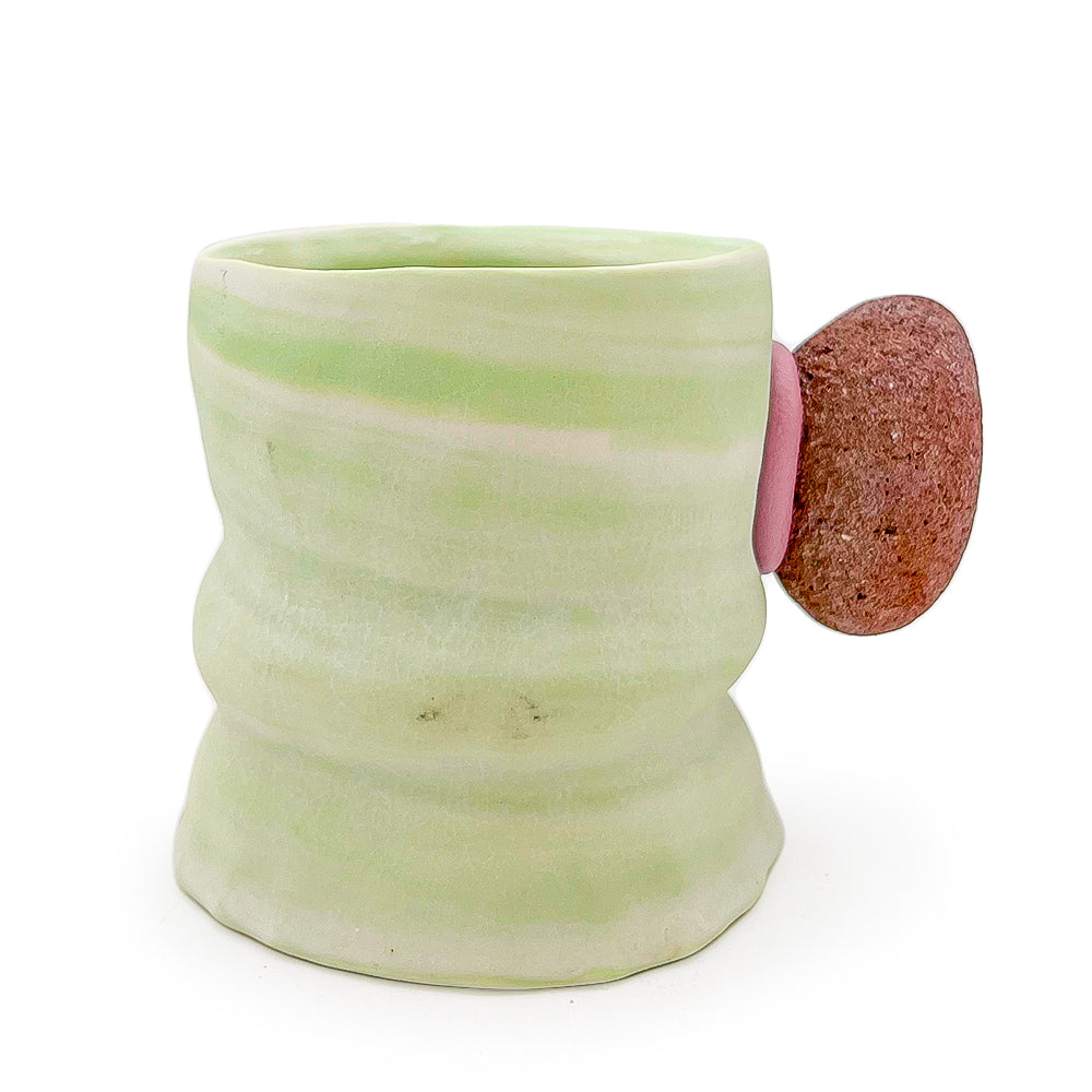 Handmade ceramic "POPJCT stoned" mug with found stone handle. 3.75" x 5" x 3.5"