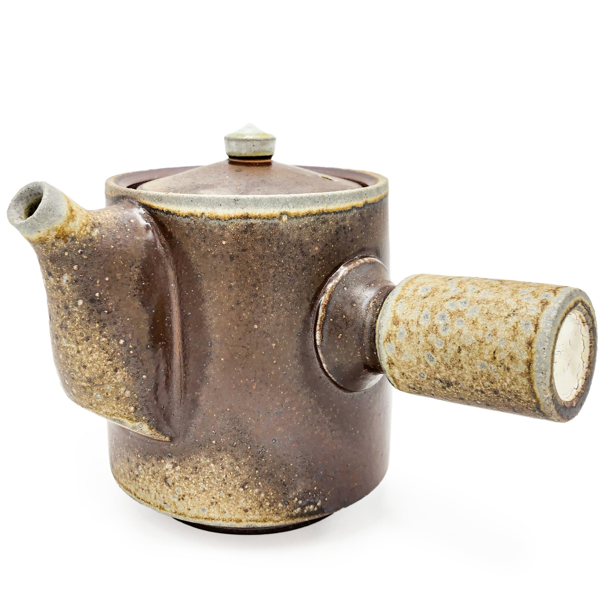 Handmade ceramic soda-fired teapot with brown slip. 7.5" x 6.5" x 6.5"