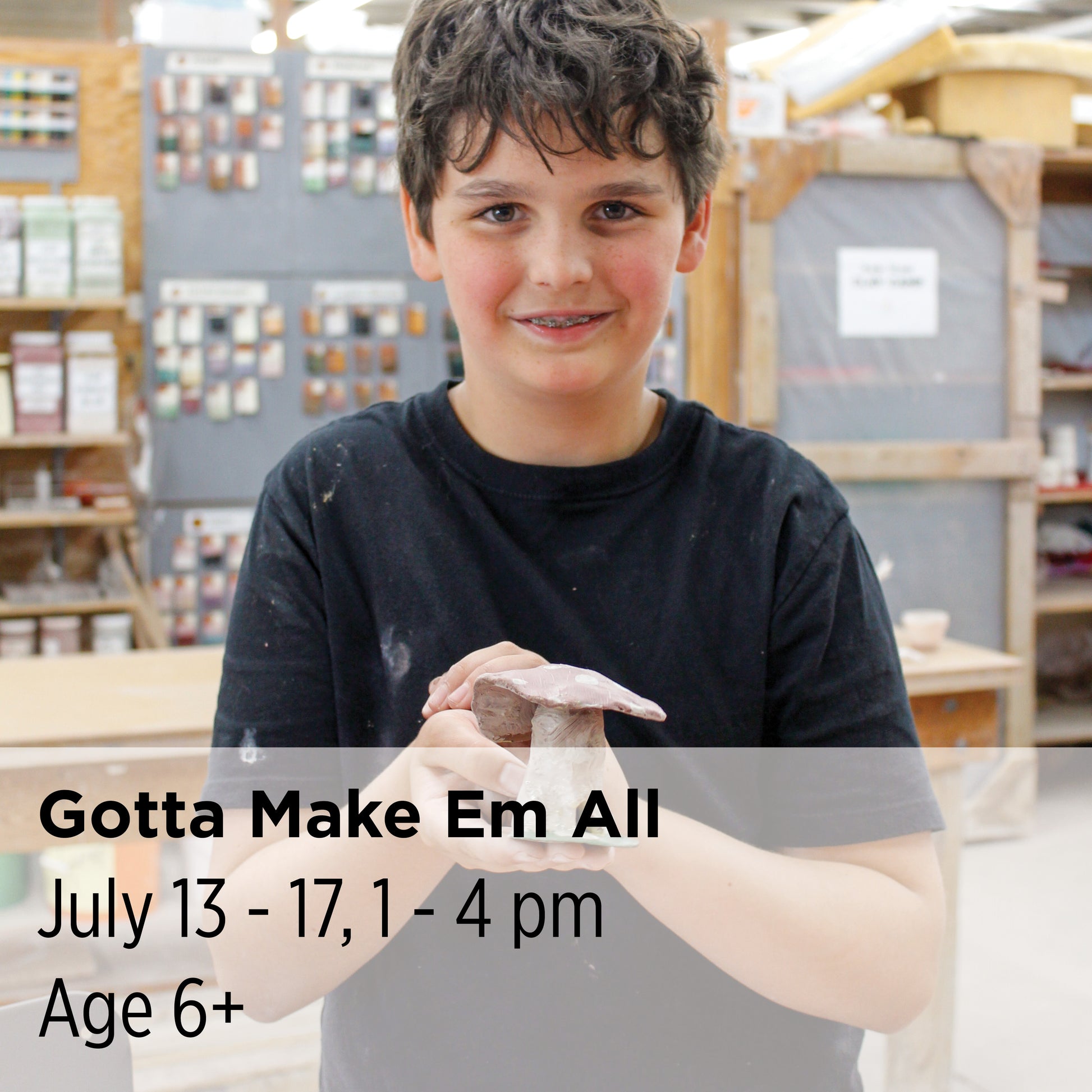 Create your own creatures and all the accessories you need to be a true Pokémon master such as Poké Balls, berries and potions. Bring your favorite book and cards for inspiration. Campers will learn handbuilding techniques and colorful slips to create the World of Pokémon.