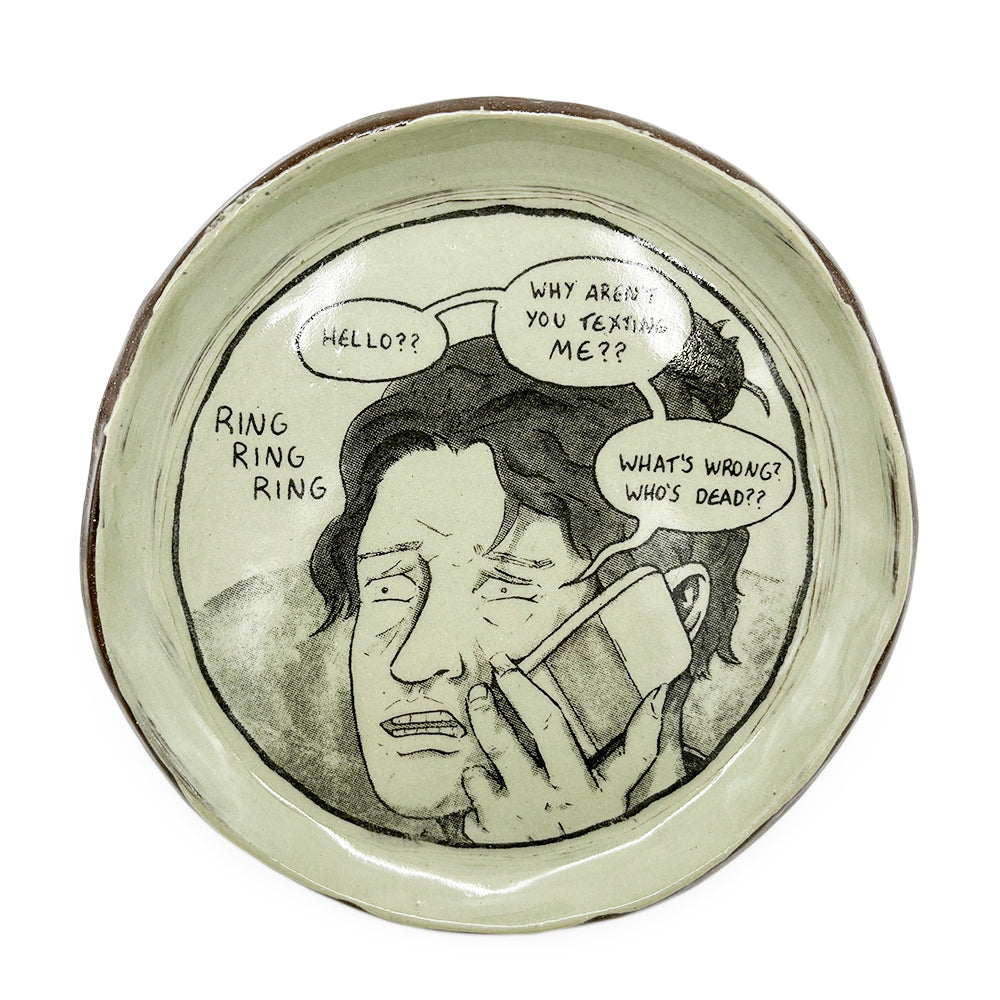 Handmade ceramic plate with "Hello?? Why aren't you texting me??" 7.25" x 7.25" x 1"