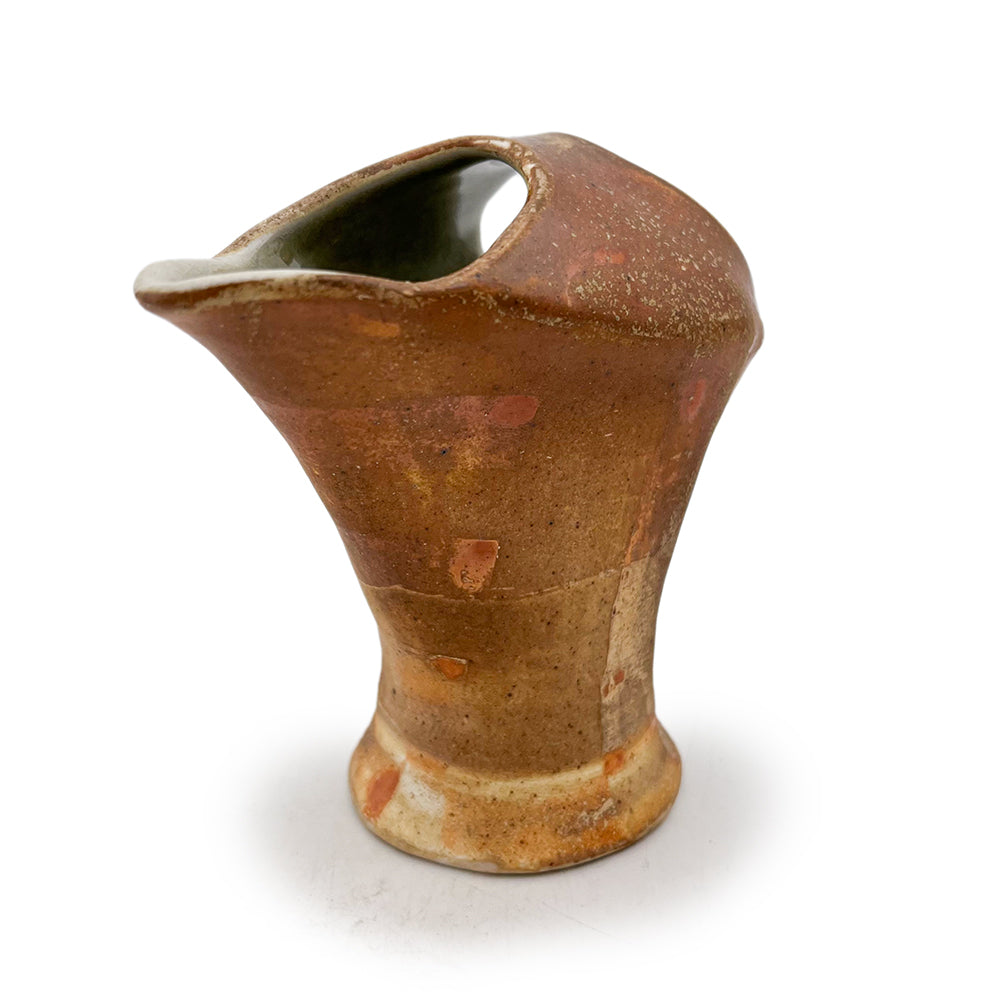 Handmade wood-fired ceramic pitcher. 5" x 3" x 4.5"