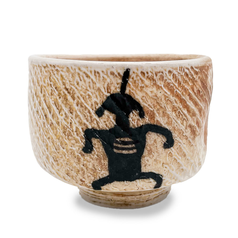 Handmade ceramic cup with cup with petroglyph figure image. 4" x 4" x 3"