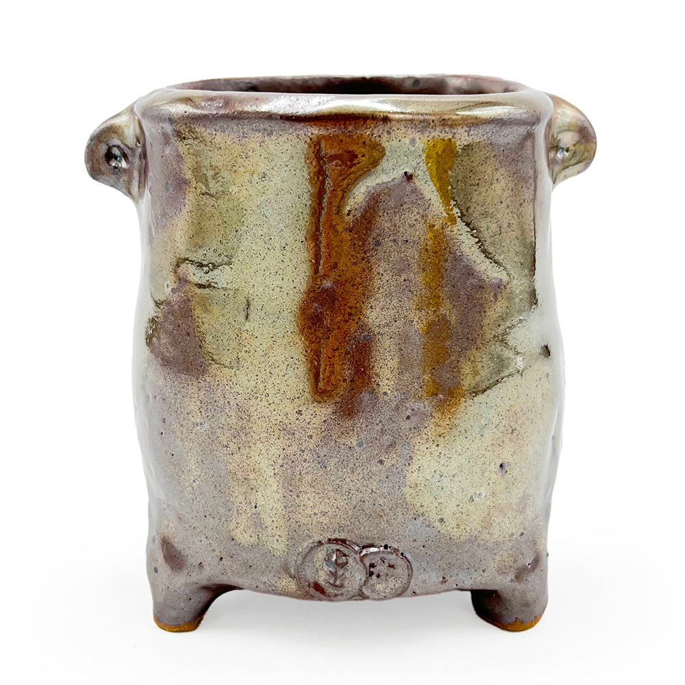 Handmade ceramic brush holder with tenmoku brown, square. 5" x 5" x 5"