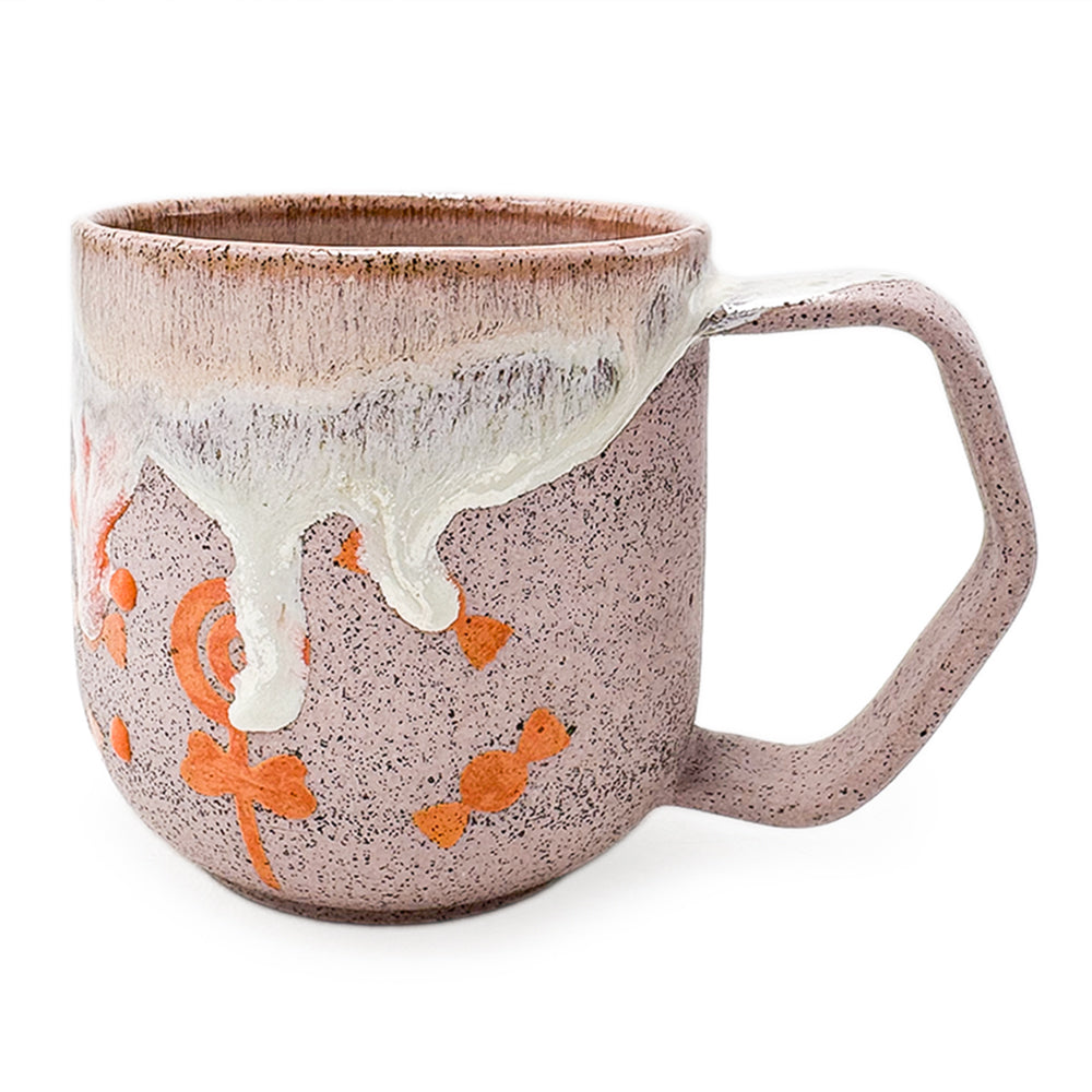 Handmade stoneware orange 'Drippy's Candy Mugs' mug.