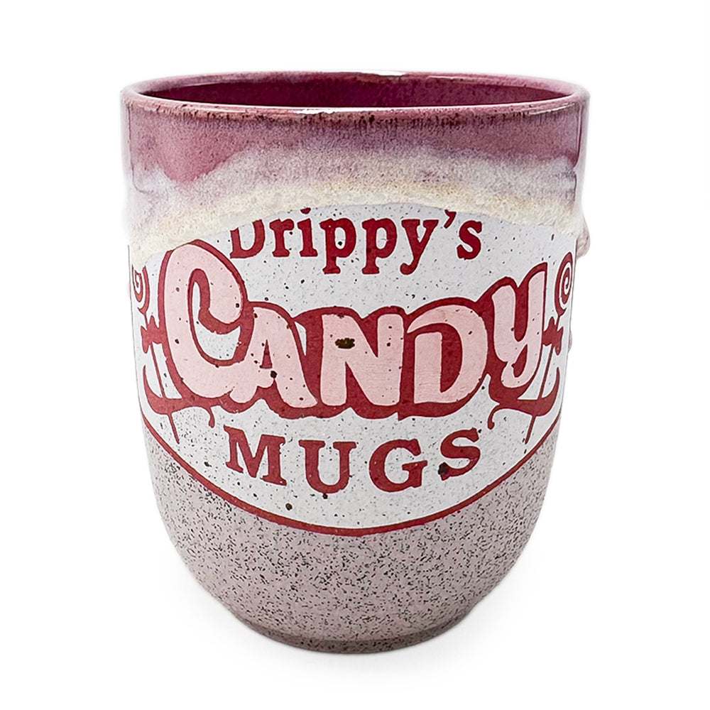 Handmade stoneware pink 'Drippy's Candy Mugs' mug.