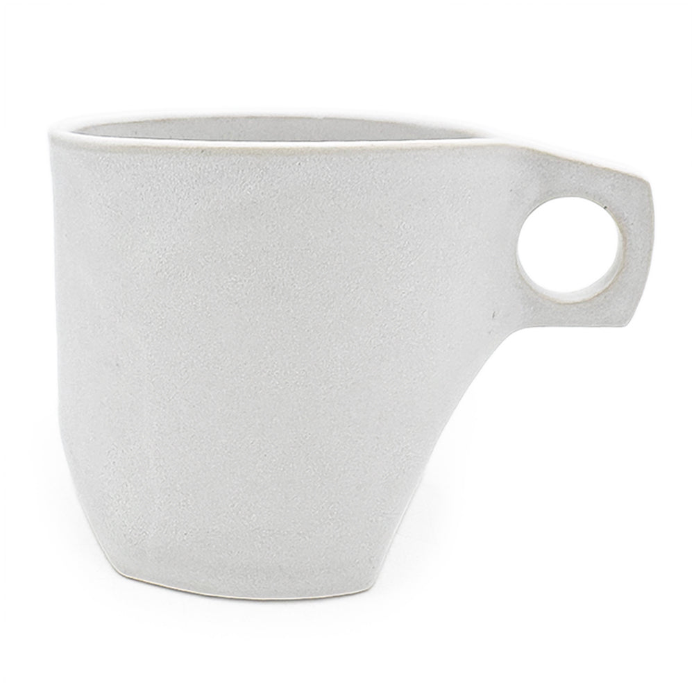 Handmade ceramic 'Mad' mug with contours and 'Salt' white glaze.