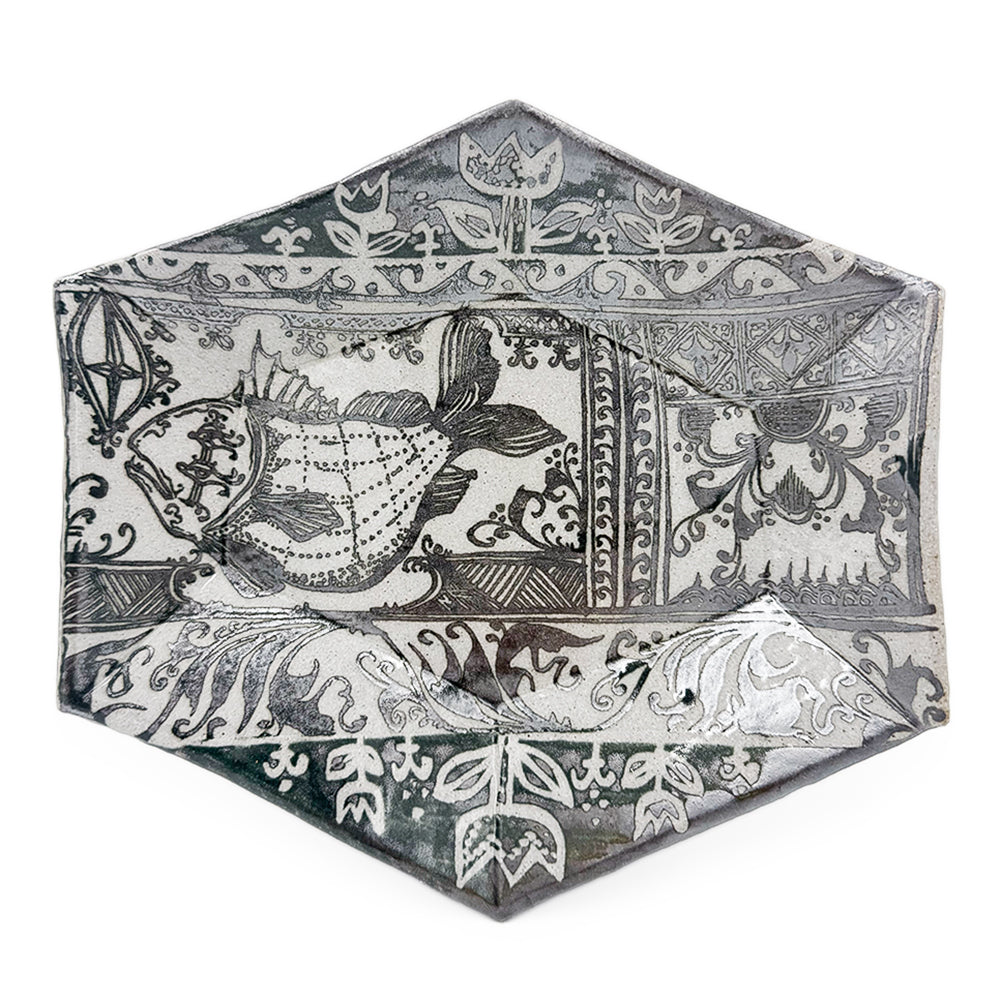Handmade ceramic hexagon plate with fish.