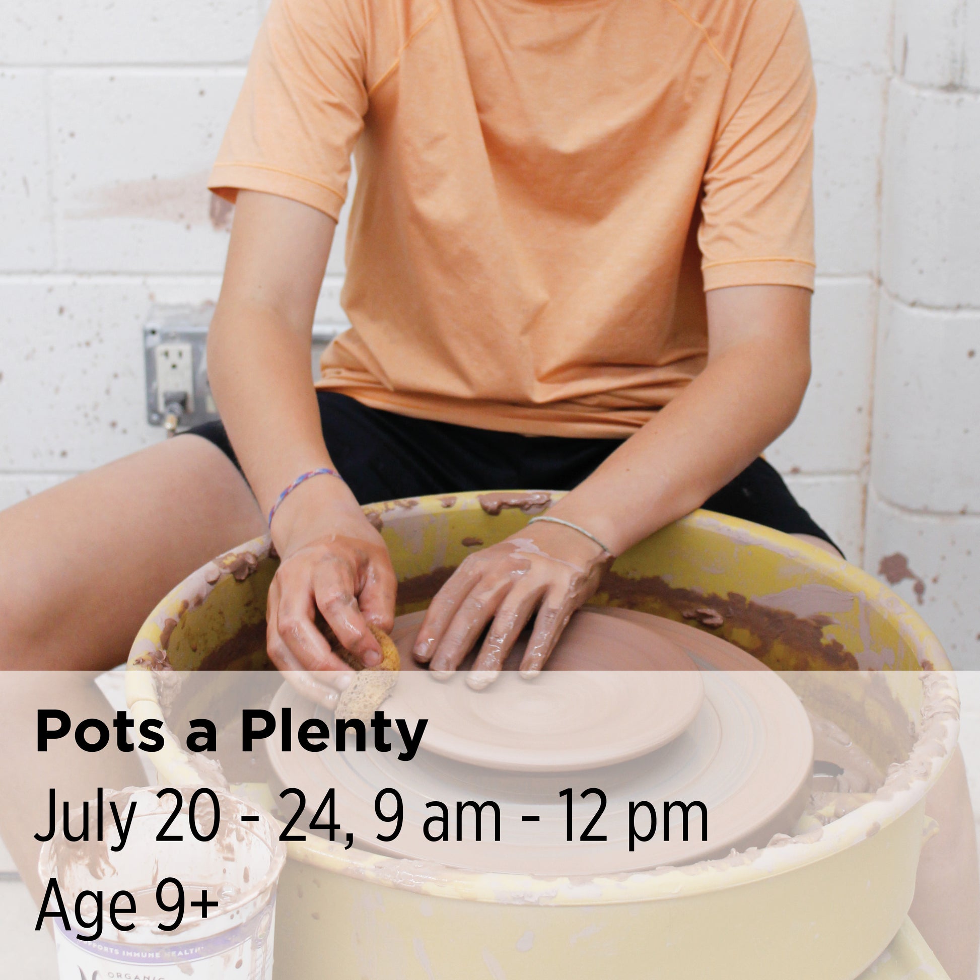 Try your spin at the wheel in this comprehensive throwing camp! Campers will learn the basics of centering, throwing, and trimming in this course. Projects will include throwing cups, bowls, plates and any additional projects campers might have in mind that could be completed on the wheel. We will discuss various ways of completing pieces once they come off the wheel and encourage campers to try attaching handbuilt elements and a method of carving on forms known as sgraffito.