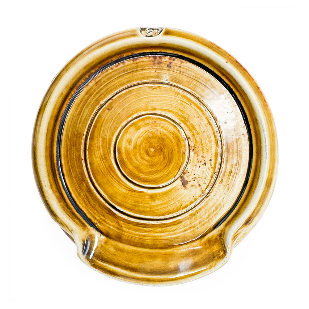 Handmade soda-fired porcelain spoon rest with Amber Celadon glaze.