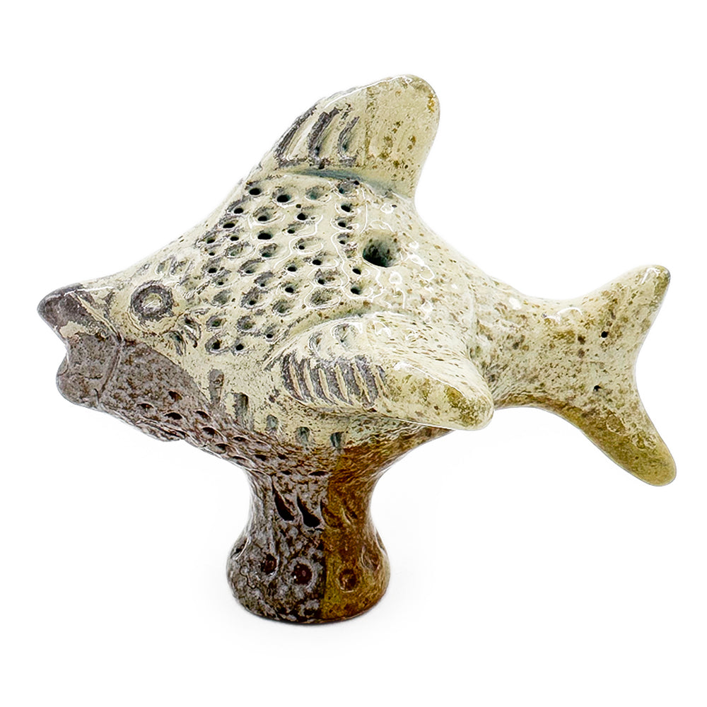 Handmade soda-fired stoneware 'Folk Story Fish Whistle.'