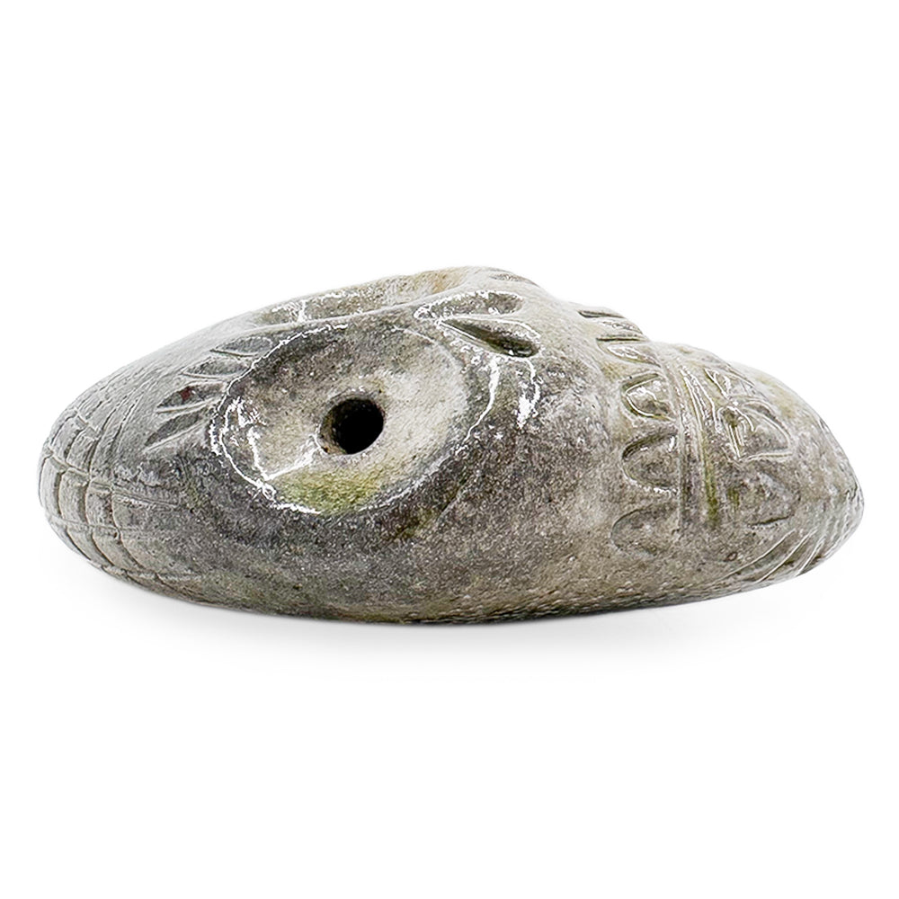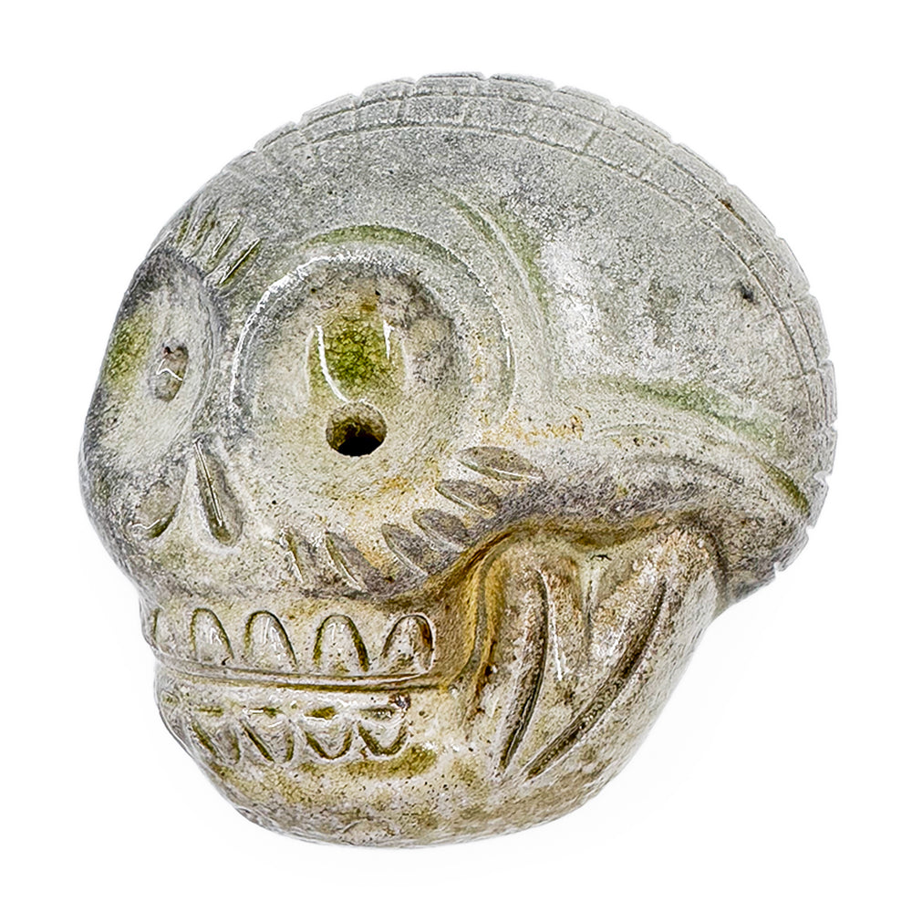 Handmade soda-fired stoneware skull whistle.
